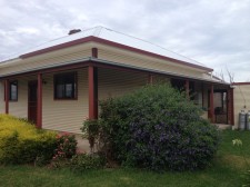 This colorbond clad home is set back off the main road and is fully fenced. Comprising of 2 bed rooms both with built in robes, sun room/third bedroom, living room with solid fuel heater and new carpet, fully renovated kitchen, (gas bottle for cooking only), fully renovated bathroom with shower only, lock up single garage and two bay open shed also. Set on a large block with established fruit trees and tank water this property is sure to delight.