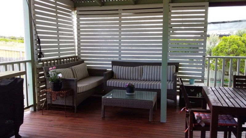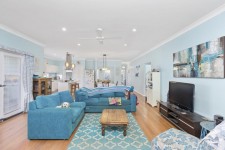 The lounge at the front of the house opens onto the merbau deck which offers ocean views and wraps around 3 sides providing views and shelter via the alfresco area.