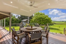 A new undercover alfresco area with spotted gum deck enhances the spectacular views, across the garden and beyond the perfect place to spend endless hours living the dream. There is a handy rumpus room under the house suitable for a teen's retreat or extra guest bedroom. The double garage has 2 roller doors as well as a separate storage room, all with power and concrete flooring, again looking towards family enjoyment; the (back yard or rear area) has an elevated cubby with 2 slides, sandpit as well as a sunken trampoline and pizza oven.