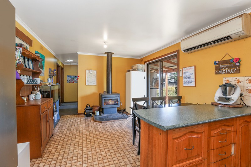• Comfortable 4 bedroom home, open plan kitchen/dining (electric cooking, reverse cycle air conditioner solid wood heater), spacious lounge (master bedroom off lounge), family bathroom with shower and separate bath, laundry, separate toilet and 3 bay carport.
