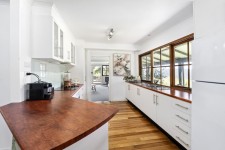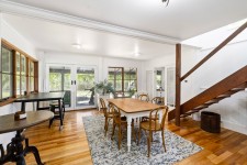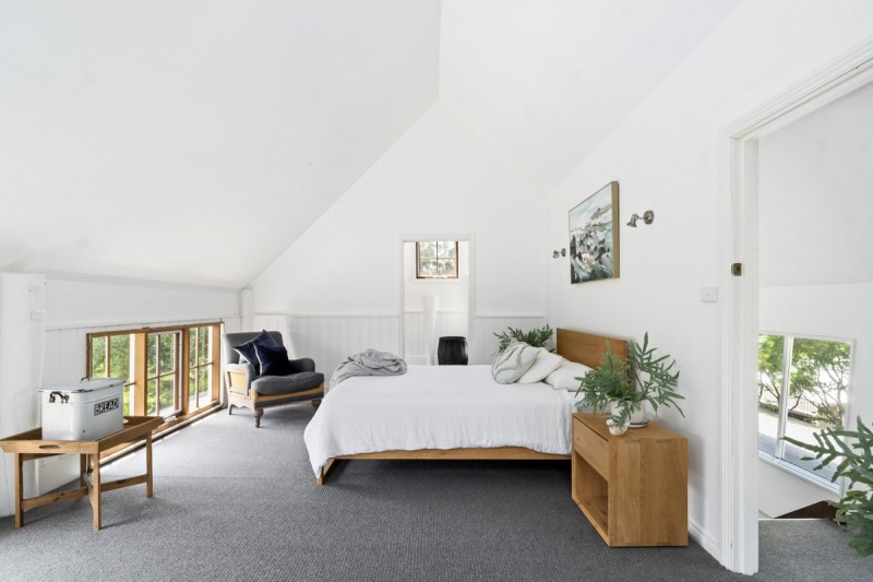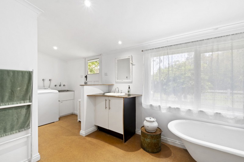 The centrally located bathroom, which includes a shower, bath, and integrated laundry, ensures convenience, while the large, open-plan kitchen and dining area with electric cooking invites a relaxed yet sophisticated atmosphere. A separate living room, featuring a solid wood heater, adds to the home's charm and character with French doors opening onto the expansive ¾ wraparound deck with a veranda invites you to enjoy the stunning views, shaded by mature trees, making it an enchanting space for summer gatherings. With an abundance of rainwater supply, pressurized to the house via a pump, this property also offers eco-friendly living.