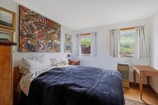 The residence, a charming 1930s dairy building transformed into a unique French-inspired home, is a testament to timeless elegance. The ground floor includes a bedroom and an inviting open-plan dining and lounge area, while the upper level offers additional sleeping quarters providing ample accommodation. The home also features a bathroom with both a shower and bath, as well as a separate toilet and laundry for added convenience.