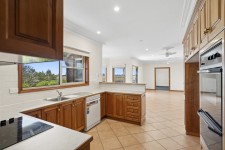 Set on 14.45 acres of fully fenced land with sealed road frontage, the property is ideal for those seeking a private, low-maintenance lifestyle. Town water is connected, complemented by quality bore water and efficient solar power systems. The home features a stunning landscaped garden at the front and rear, complete with an automated watering system.