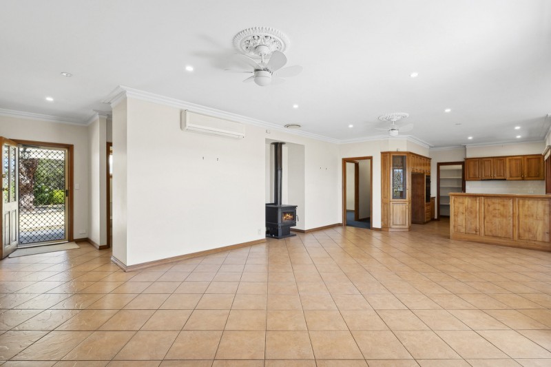 The heart of the home is the open-plan kitchen, dining, and lounge area with a solid wood heater and reverse cycle air conditioning - perfect for family gatherings. Enjoy cooking in the spacious kitchen with electric cooking, a wall oven, a dishwasher, and a walk-in pantry.