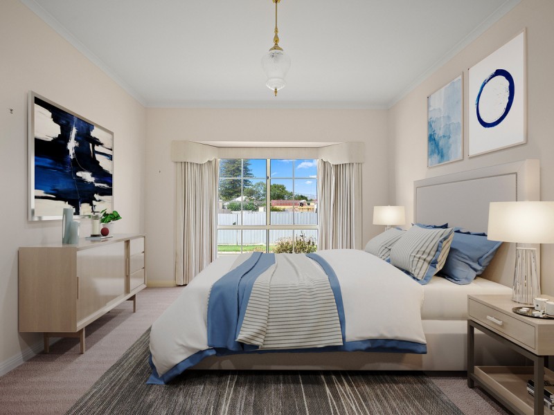 Two bedrooms including spacious master bedroom with feature bay window, each complete with lush carpet finish and extensive built in robes