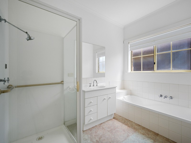 A light and bright bathroom with shower, bath, vanity and separate toilet is easily accessible from bedrooms and main living area. A well sized laundry also has excellent storage.