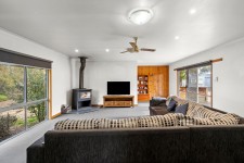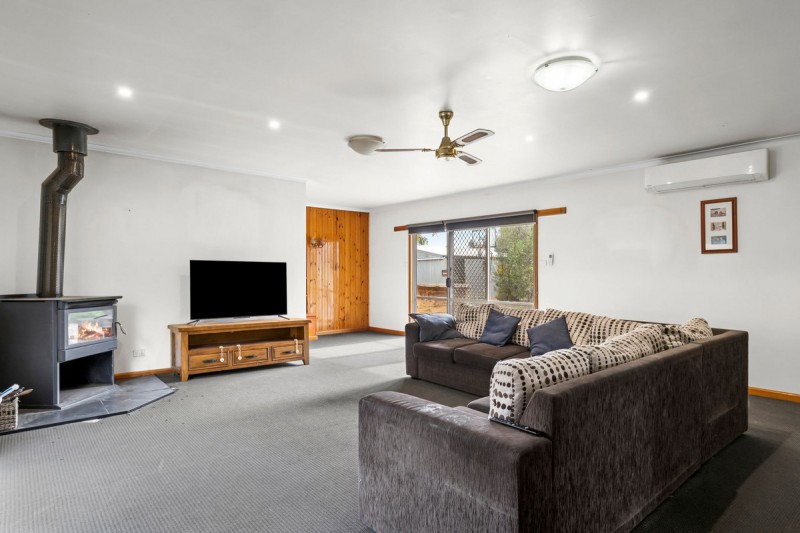 The home boasts two cozy lounge areas, both with wood heaters for warmth during the cooler months. Both lounge rooms also includes a ceiling fan, while the formal lounge features both a wood heater and reverse cycle air conditioning, ensuring comfort year-round.