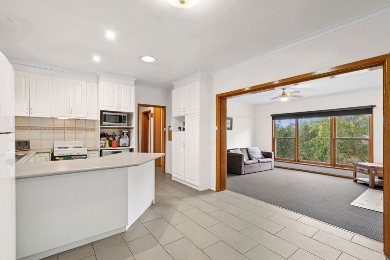 This well-maintained 3.5-acre property offers a peaceful rural lifestyle, featuring a fully fenced block with abundant water sources, including a dam and over 155,000 liters of rainwater storage. The spacious open-plan kitchen and dining area are filled with natural light from a skylight, and the kitchen is equipped with a dishwasher and electric cooking.