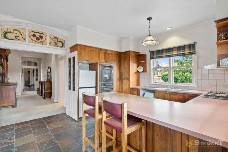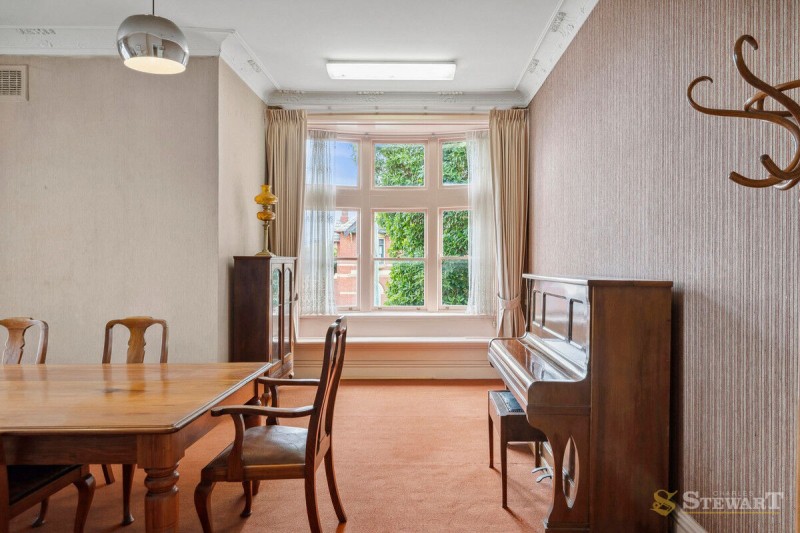 Zoned Commercial One, the building retains its dual functionality. The ground floor includes a formal entry with intricate stained-glass windows, timber panelling and a magnificent timber staircase, hallmarks of its Art Nouveau design. Five offices, a strong room, kitchen and bathroom amenities complete a flexible workspace.