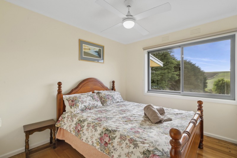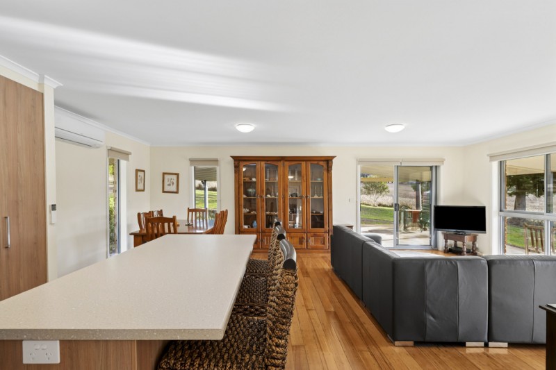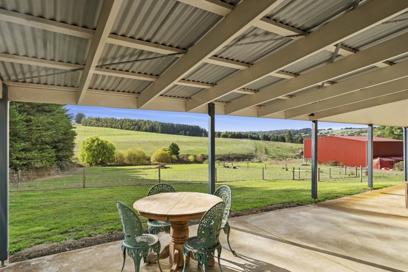 Lot B – 2.83 acres (1.145 Ha) – 205 Centre Spur Road, Cooriemungle Lot B offers a three-bedroom brick veneer home with an open-plan kitchen, dining, and living area, ideal for easy living. The property features one bathroom and is well-maintained with good fencing throughout. The elevated outlook from this lot presents breathtaking views, and the property boasts an excellent rainwater storage system, ensuring water needs are well taken care of.