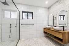 The master suite is a true sanctuary, fully renovated to include a luxurious ensuite with a double walk-in shower, dual vanity with a stylish backlit arch mirror, and a spacious walk-in robe. Natural light fills the room, creating a calm and inviting retreat. The remaining three bedrooms are generously sized with built-in robes complete with a centrally located family bathroom featuring separate bath to shower.