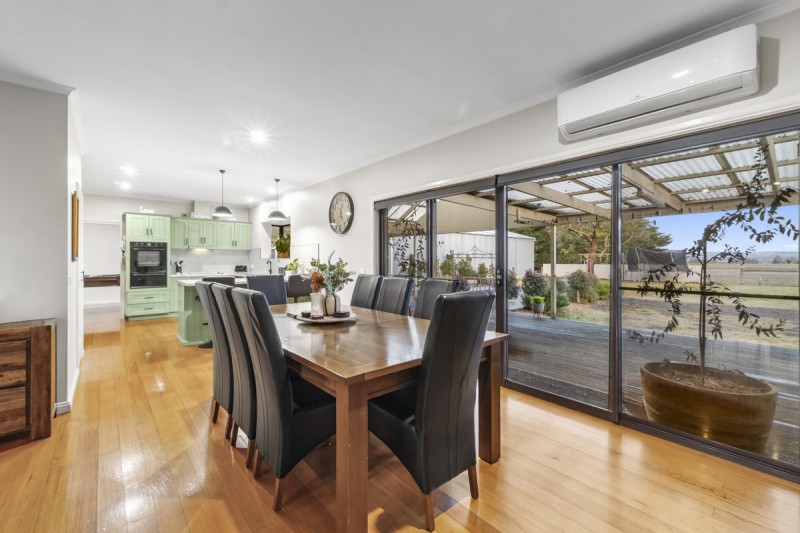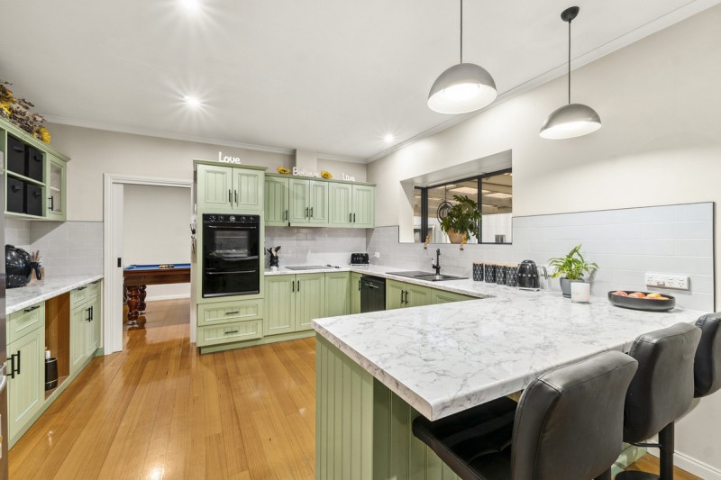 Step inside to discover a home that has been thoughtfully and extensively renovated. The open plan kitchen and dining area has been transformed into a stylish and functional heart of the home, boasting timber cabinetry, polished floorboards, electric cooking, a dishwasher, expansive bench space, and a generous walk-in pantry. This space opens out to a large south-facing timber deck—ideal for entertaining or family gatherings.