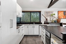 From the moment you step through the Jarrah timber-lined entrance hall, you'll feel the charm and craftsmanship that define this special home. The open-plan living area features soaring ceilings with exposed timber trusses, wall-to-wall north-facing windows, and a perfectly positioned wood heater – creating a cosy retreat with sweeping views of the forest and surrounding landscape.