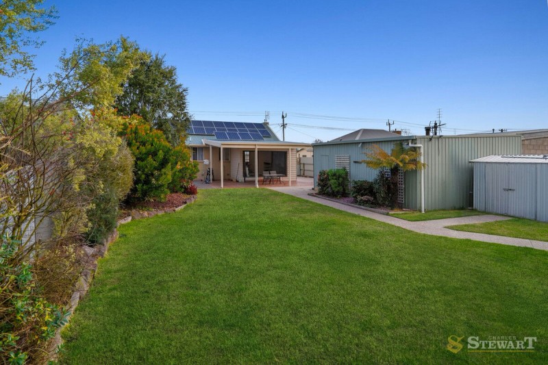 Outdoors, the north-facing backyard is ideal for entertaining, with a sunny patio for weekend barbecues, birthday parties and family gatherings. A powered, secure shed adds practicality for storage, hobbies or workshop use, while 24 solar panels help keep energy costs down.