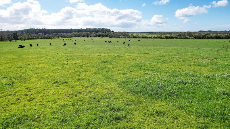Strong fertile and productive ryegrass and clover pastures support 50-60 Angus cows and calves. Excellent subdivision and fencing throughout with 5 main paddocks, underpinned by versatile loam and basalt soil types. Stockwater is a feature with 2 interlinked bores- mains power and solar reticulating to all paddocks. Farming infrastructure includes a modern steel hay/machinery shed, GI machinery shed with power and sundry shedding.