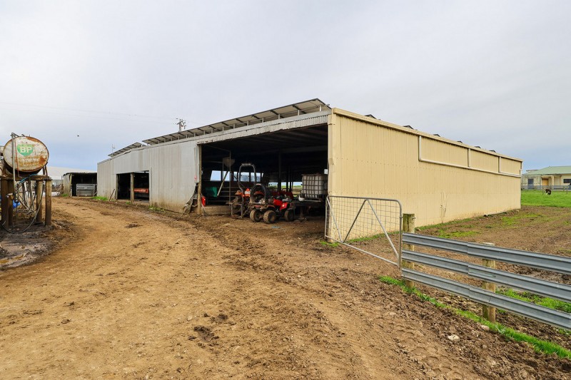 - Huge 6500m2 (1.5ac) undercover loafing barn with concrete feed pad and flood wash. Massive shedding complex incorporating calving pad (80-90 head), machinery storage and fertiliser bunker. Additional shedding including workshop.
