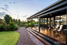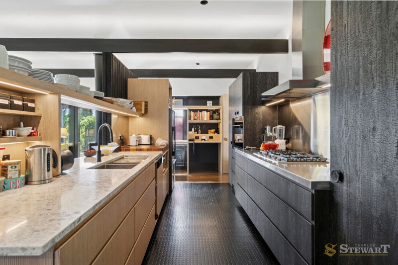 Recognised for its design and featured in Open Gardens Victoria, the garden delivers year-round beauty with curated plantings, winding paths, and a sustainable watering system. A secluded, solar-heated pool creates a private oasis at the rear.