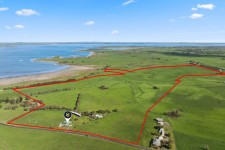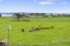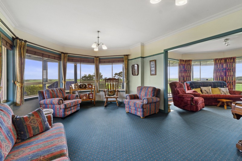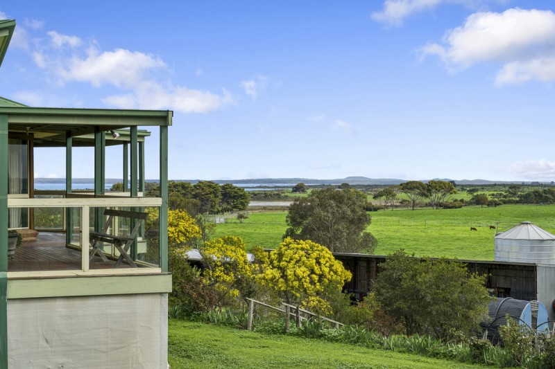 Lot A, Lake View Home, 3.28 acres (1.0326 ha) Beautifully designed five-bedroom home in an elevated position with sweeping verandas and views across Lake Corangamite. Two ensuites, family bathroom, open-plan kitchen, dining and living, formal lounge, study, and double garage. Disused dairy, two machinery sheds, and small orchard.