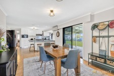 At the heart of the home, the kitchen is a standout, beautifully appointed with a gas stove and electric oven, dishwasher, extensive bench space and excellent storage, making it ideal for both everyday meals and entertaining. Adjoining living and dining zones provide flexibility for family gatherings, while large windows capture leafy outlooks across the property.