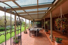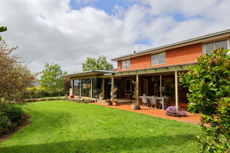 The focus of this magnificent property is the architecturally designed five-bedroom brick home (C1987) with a kitchen and living area extension including large glass windows overlooking the magnificent garden and easterly panoramas.