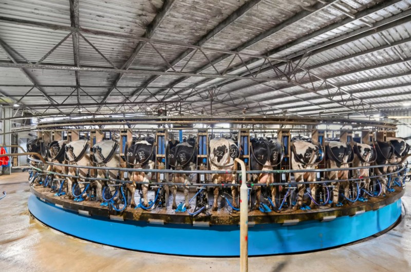 - State-of-the-art working improvements including two modern compost barns (totalling 24,780 sqm)*, a fully automated 60-stand rotary with latest technology including teat spray robot and glycol chiller, and all supporting infrastructure, in addition to steel cattle yards, machinery and sundry shedding, and extensive grain and silage storage (>9,000 m2 concrete silage storage*)