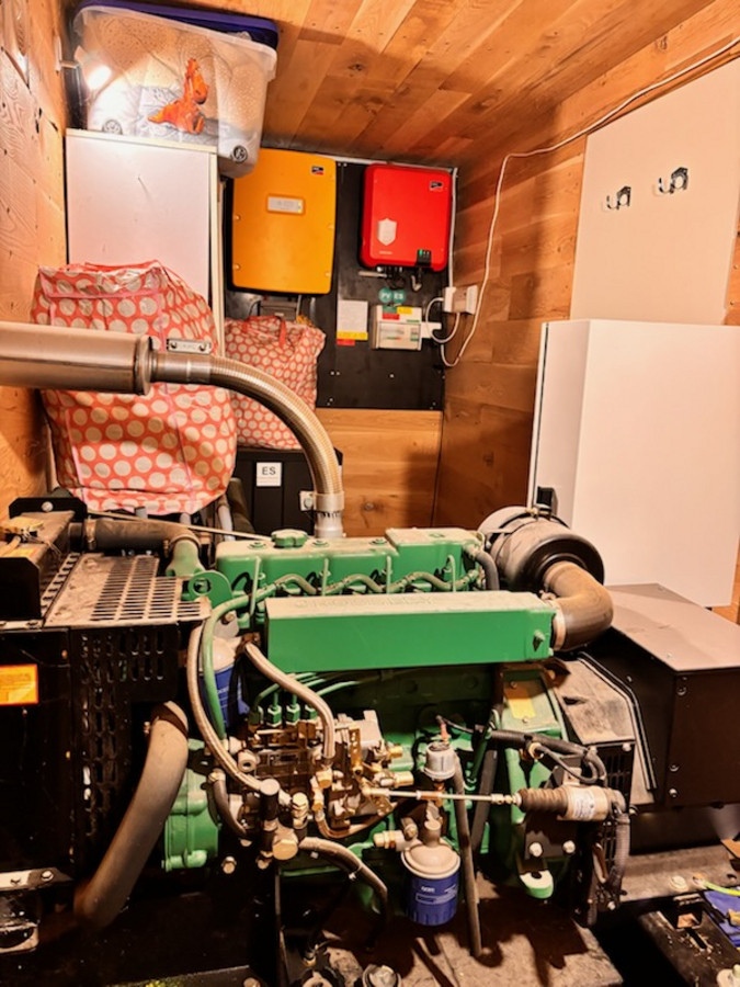 • Fully operational 24 panel “Sunny Boy” solar system with backup “Welling & Crossley” diesel generator.