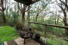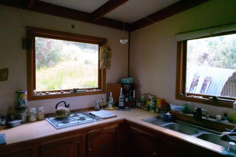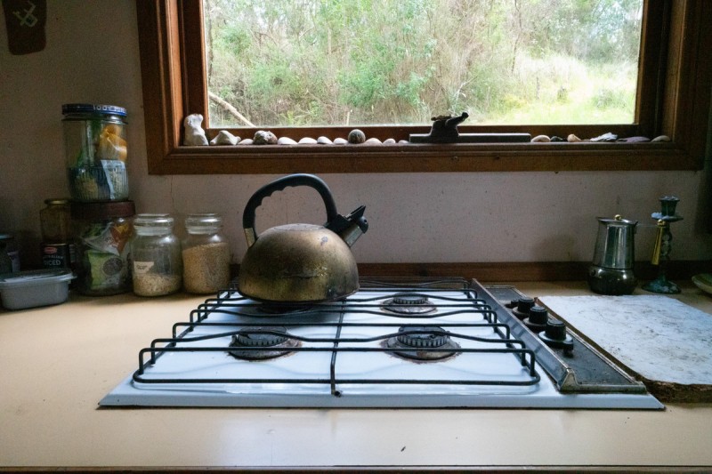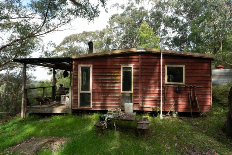 The character-filled weatherboard cabin is positioned to take in the surrounding landscape, with a front veranda that looks out over the peaceful native bush. Inside, the home features an open plan kitchen, dining, and living area with gas cooking and a solid wood heater also a separated wood heater that heats the hot water service, creating a warm and functional space that opens directly to nature. One bedroom provides a quiet and restful retreat, and there's also a laundry and bathroom with toilet and shower, complete with rainwater tanks.