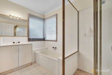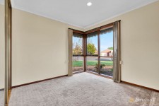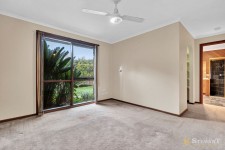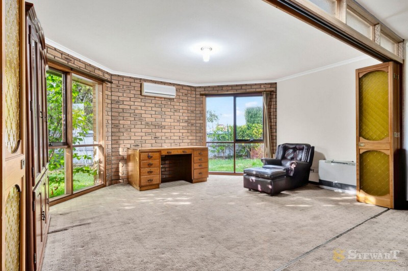 To the rear, a study overlooks the secure backyard — a bright and versatile space ideal for working from home, reading, or simply unwinding with a view of the garden. The main bedroom includes a walk-in robe and ensuite with spa, while two additional bedrooms each feature built-in robes and share a central bathroom with separate toilet.
