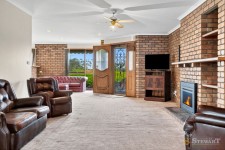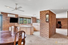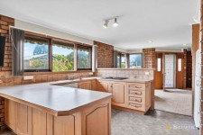 The home rests on a 644sqm allotment and has been thoughtfully designed for comfortable family living. At its heart, the open kitchen and dining area offer ample bench space, a dishwasher, and a practical layout that flows seamlessly to the main living room. A wood fire and split system ensure year-round comfort, while large windows fill the space with natural light.