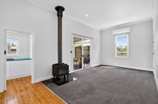 - Spacious dining and living area with Nectre wood heater and garden outlook