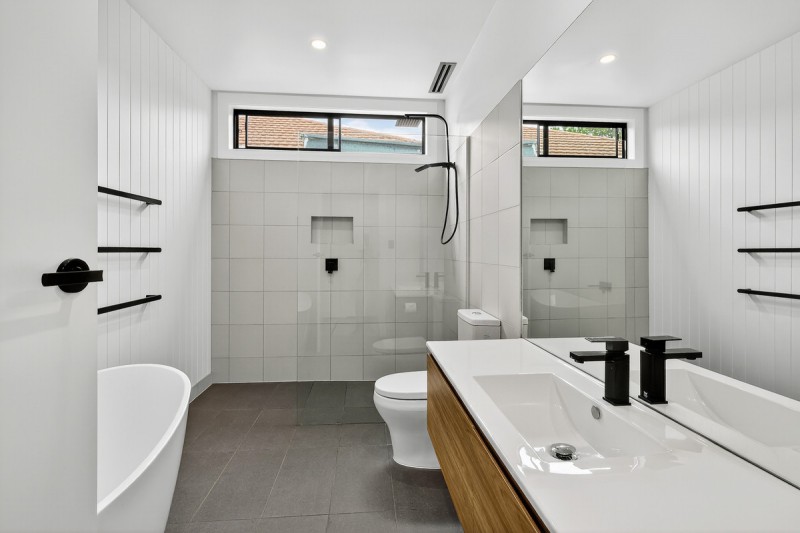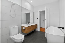 - Stylish family bathroom with large bath, shower, WC and modern vanity