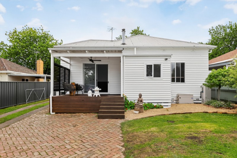 Set behind a white picket fence on a leafy street, the home welcomes you with a return verandah and classic façade. As you walk inside, you'll find polished timber floors, high ceilings, and spacious sunlit rooms that create a warm and inviting atmosphere.