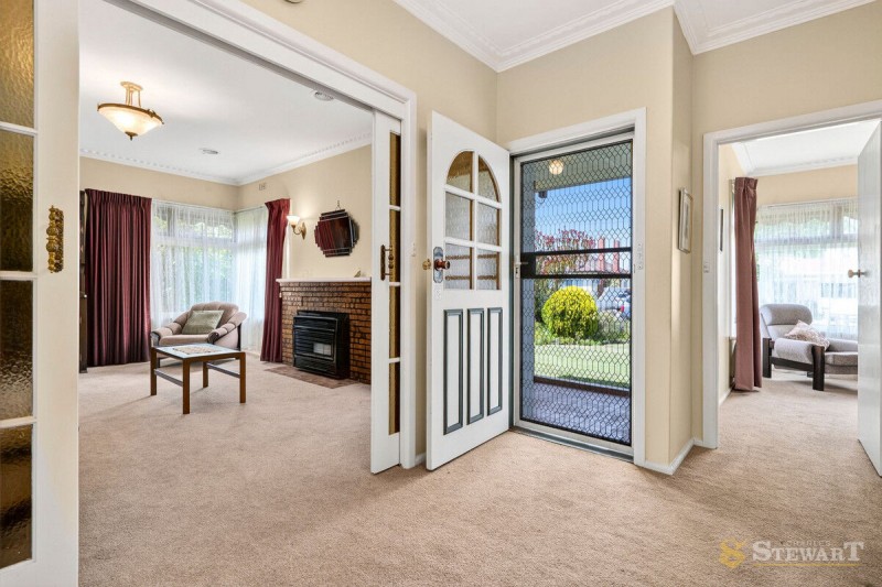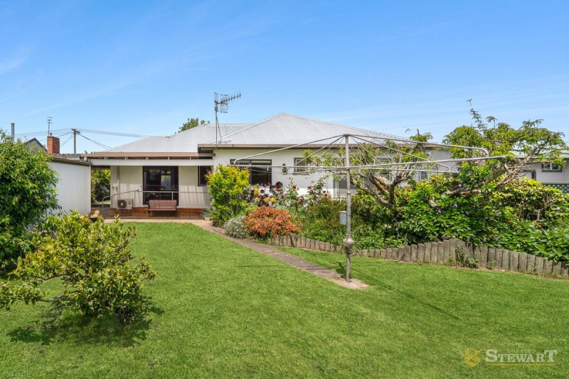 Year-round comfort is assured with central heating and a split system. The backyard is framed by established gardens, offering both privacy and a pleasant outlook. A 1000-litre water tank supports the garden through the warmer months.