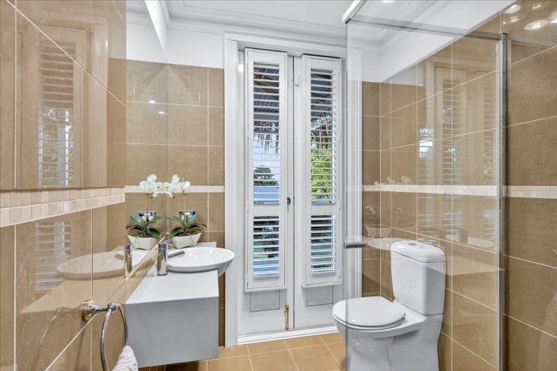 A delightful formal lounge, complete with open fire and marble mantel, extends to a quaint north-facing patio, while a light-filled rumpus room with French doors opens to a private courtyard and lawn expanse, providing an idyllic third living area. Accommodation is generous, with four spacious bedrooms, two featuring en suites, complemented by a family bathroom and guest powder room.