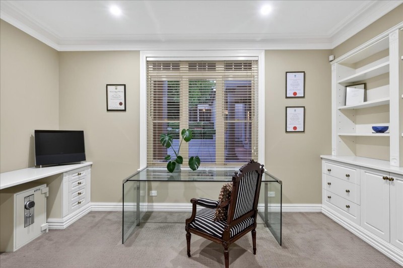 The home also offers a formal study, a purpose-built office at the rear that is spacious and could be utilised as required. Extensive garaging, ensuring functionality and flexibility for modern living.