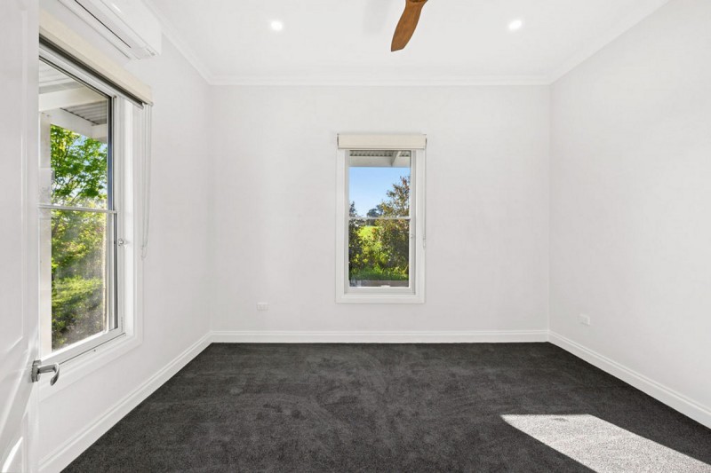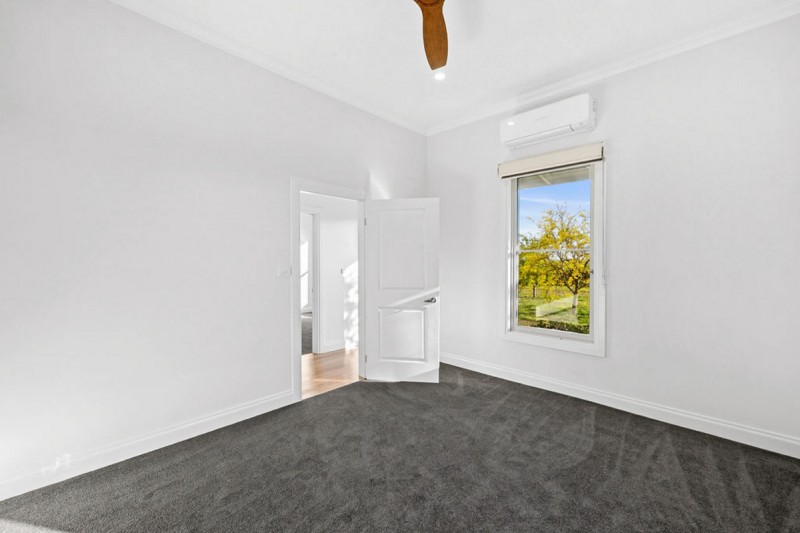 The interiors are enriched by layered details—quality carpets, bespoke timber ceiling fans, decorative plasterwork, and lofty ceilings—each element thoughtfully chosen. Comfort is assured year-round through double glazing, comprehensive insulation, reverse-cycle climate control.