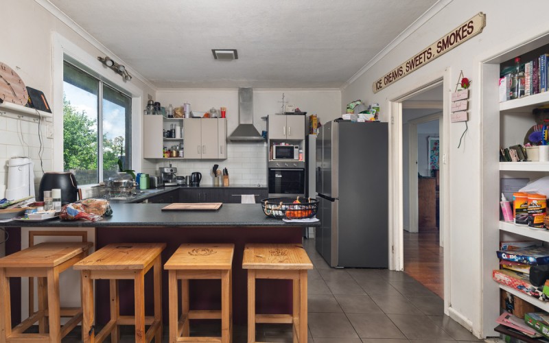 • Well-appointed kitchen with electric cooking and abundant bench, cupboard, and shelf space