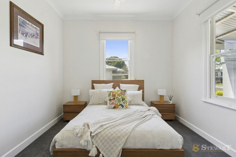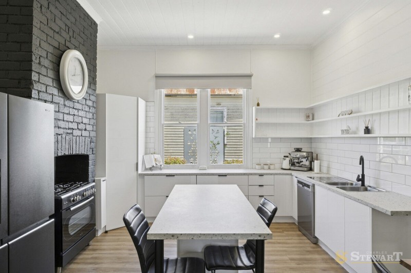 Throughout the home, classic period features shine, including high ceilings, original fireplaces, and beautiful timber wall panelling. Smart modern conveniences complement the charm, such as gas central heating, ceiling fans, a spacious laundry with ample storage, and a separate toilet.