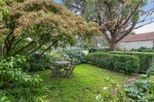 Complementing the main residence is an adjoining one-bedroom self-contained unit. With its own open plan kitchen and glass sliders leading to a veranda, this unit overlooks the rear garden and sweeping lawn expanse, providing both privacy and versatility for extended family, guests, or rental potential.