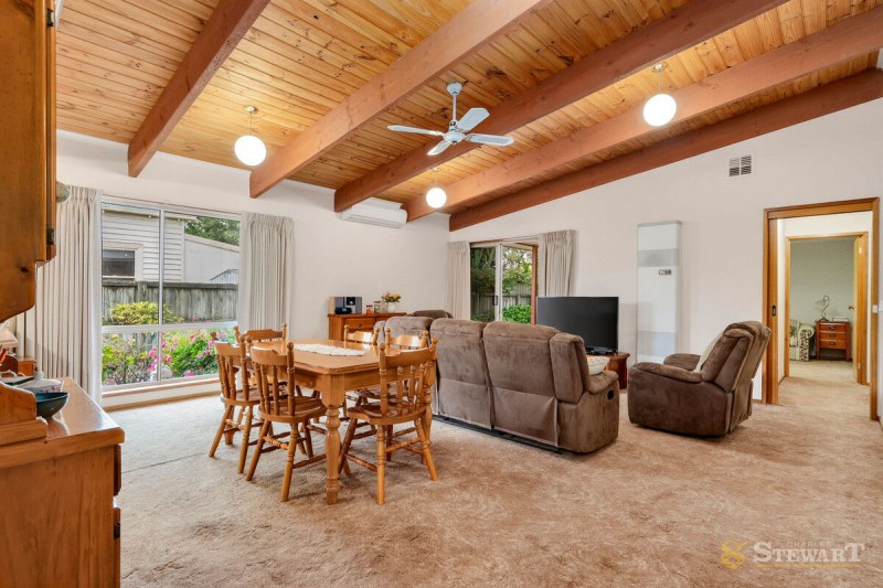 Two separate living areas provide flexibility, with the main living zone opening to the outdoor area and a second living space suited to everyday family use. Gas central heating and split system air conditioning provide year-round comfort.