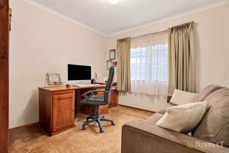 The home includes three generous bedrooms plus a separate study. The main bedroom is privately positioned and features a walk-in robe and full ensuite, while the remaining bedrooms are serviced by a central bathroom.