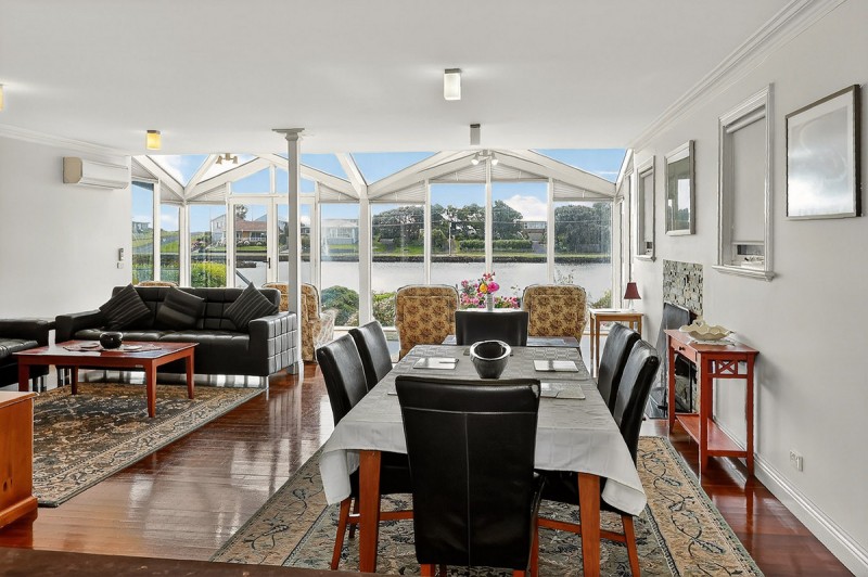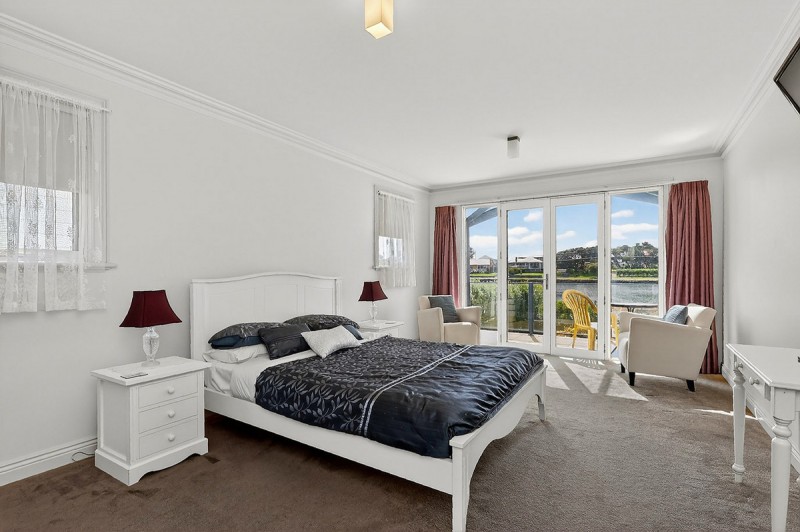 Maisies on Moyne showcases three riverfront en suite bedrooms, each opening to a private balcony with striking views across the river. The expansive open plan kitchen, living, and dining area is thoughtfully designed to capture the picturesque river and garden outlook, creating a serene and light filled home. Landscaped gardens, a paved entertaining area, sweeping lawn, and a private jetty complete the riverfront lifestyle.