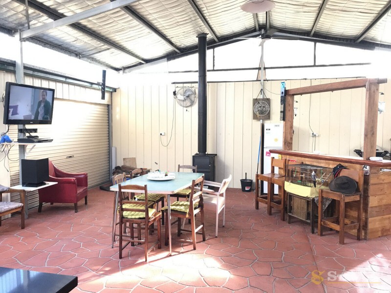 * Enclosed/Outdoor entertaining area complete with Bar, BBQ, Fridges, Kitchenette, TV, Wood heater and seating. This is connected to the deep double garage on one side and access to the easy maintenance backyard which has rear access to a laneway.