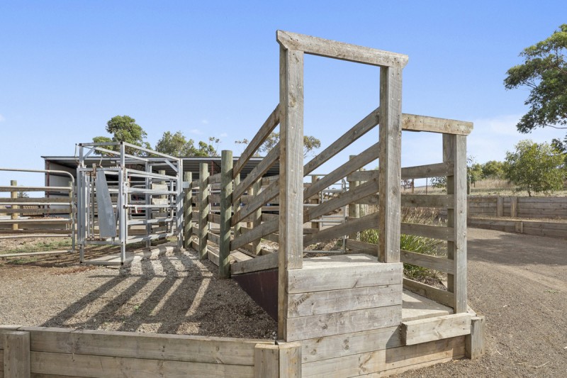 The land is thoughtfully divided into five paddocks, each serviced by water troughs and supported by a reliable 1¼ poly irrigation system. Over 400 established gum trees are securely fenced, adding shelter and character to the property. Quality stock yards complete with crush and truck and trailer race make livestock handling simple and efficient, ideal for sheep, cattle or horses.