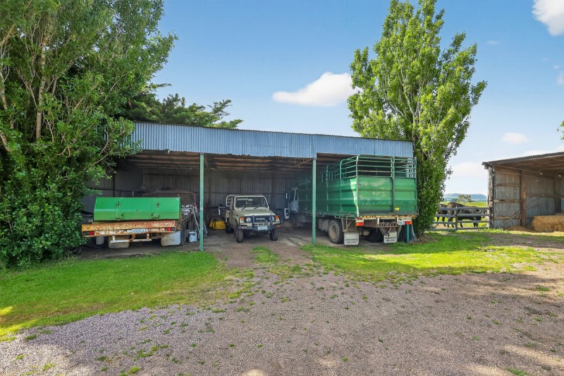 Situated at 310 Chocolyn Rd featuring north west facing 3 brm b/v family home, dual living areas including rumpus/billiard room, Tasmanian Redwood kitchen and immediate garaging for 4 cars. Set in delightfully established well sheltered garden. Substantial cattle yards – part undercover, machinery and hay shedding and stables. Excellent subdivision and laneways to 7 main paddocks. Town water connected.